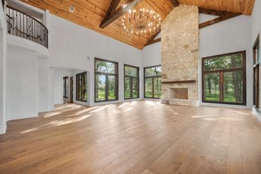 in the Great Room along with antique chandeliers and a 32-foot high fireplace!