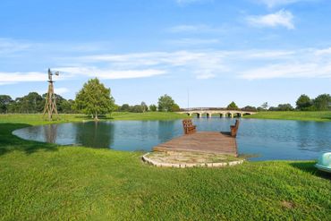 Over 100 ft long bridge over the pond in front of the main house, covered in custom stonework